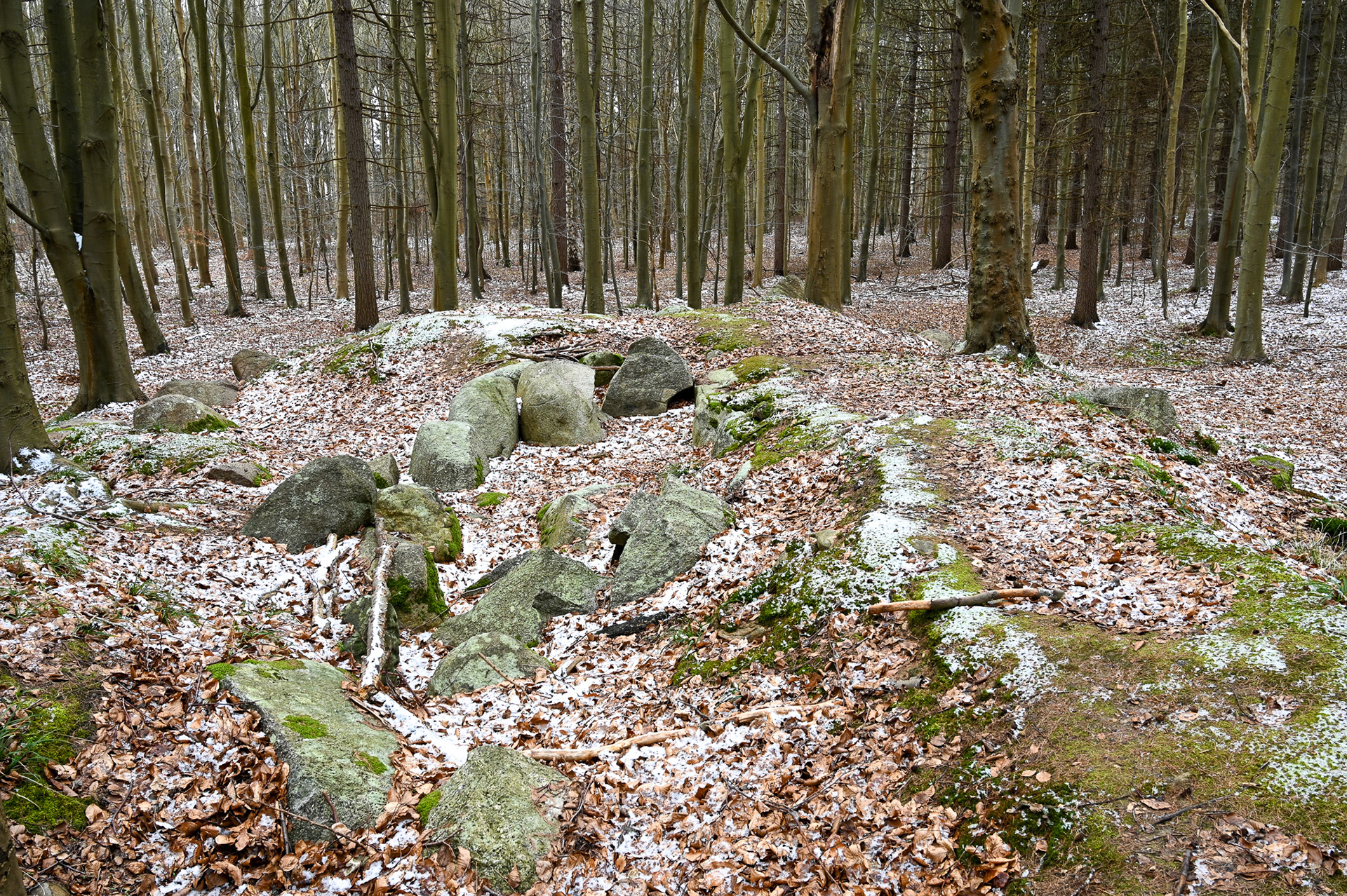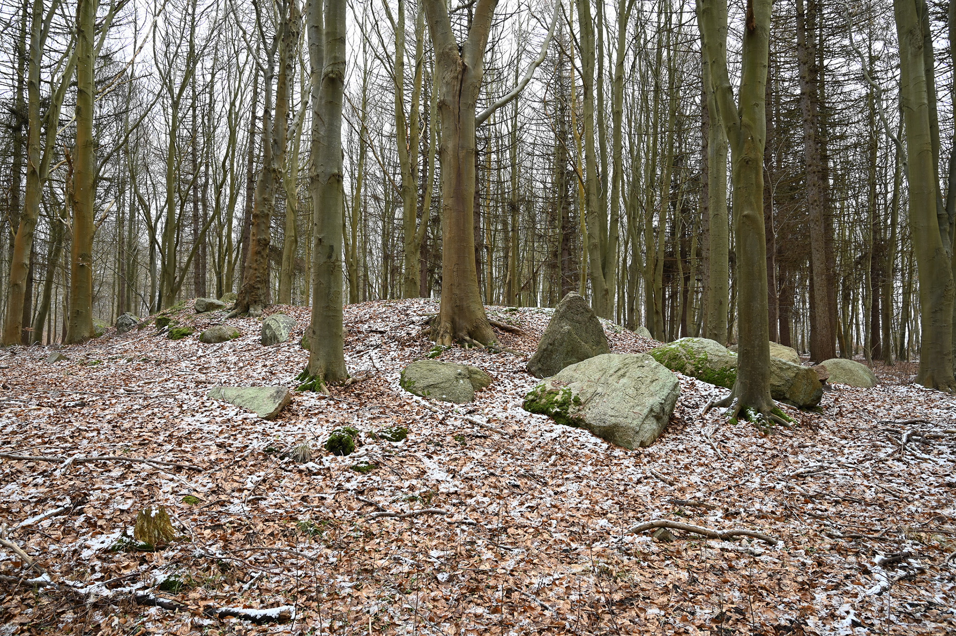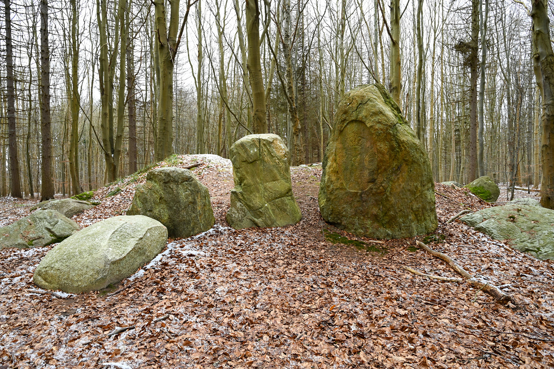 Tegn på restaurering: Ingen, men indhugget monogram fra Kong Frederik d. 7 som minde om hans "udgravning" af højen i 1843.