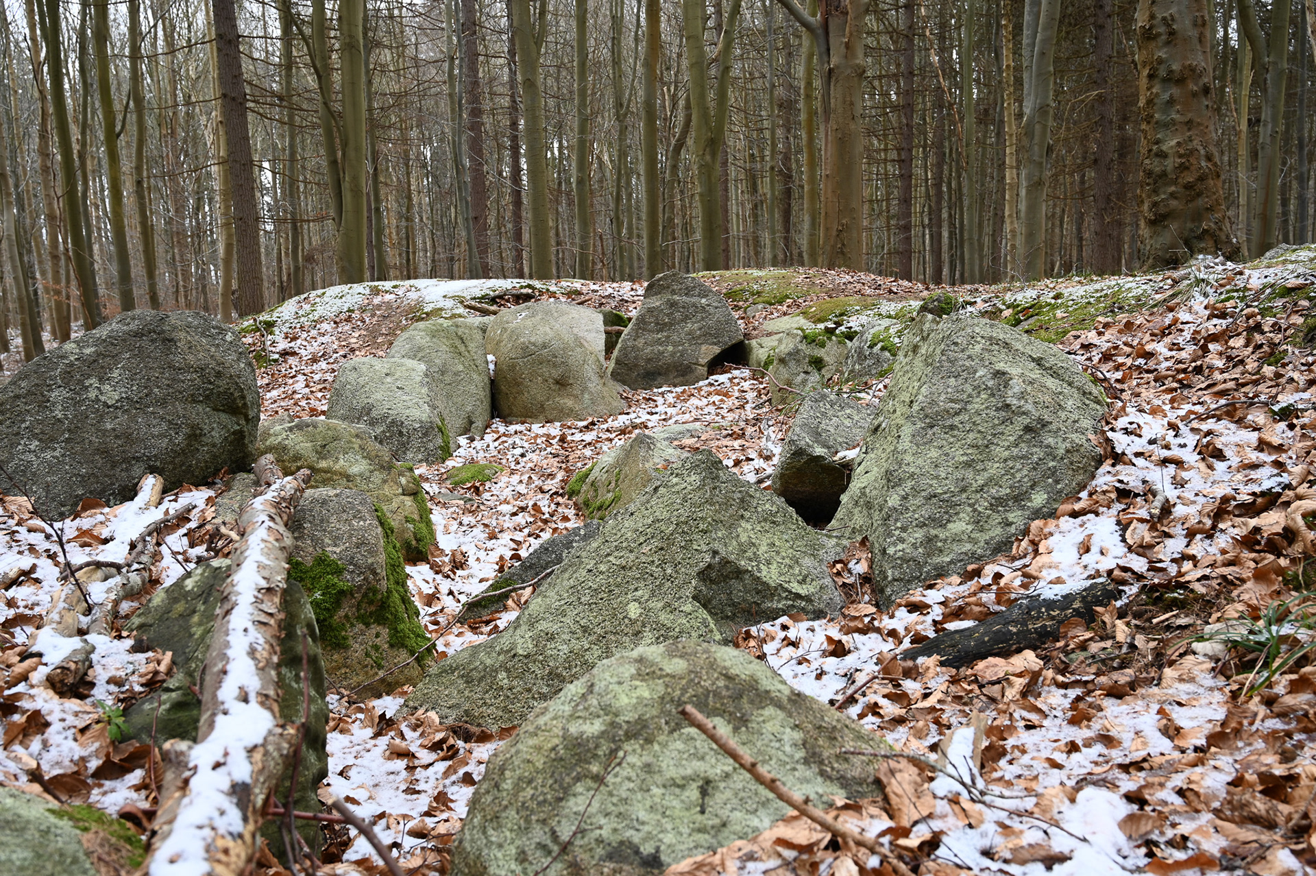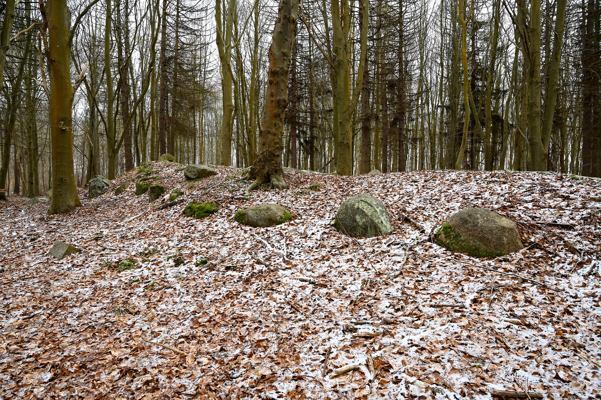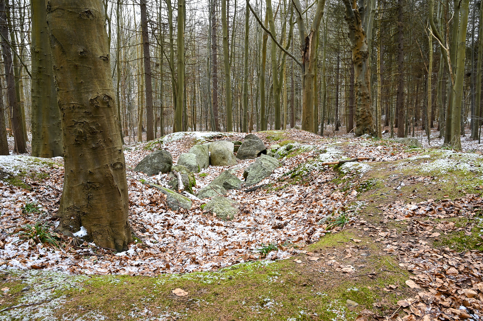 Tegn på restaurering: Ingen, men indhugget monogram fra Kong Frederik d. 7 som minde om hans "udgravning" af højen i 1843.